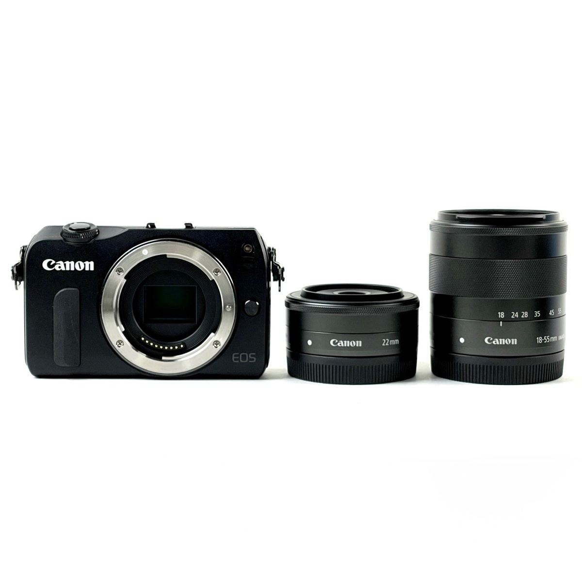 - 【1円】 キヤノン Canon EOS M ダブルレンズキット ブラック (マウントアダプター付) デジタル ミラーレス 一眼カメラ 【中古】