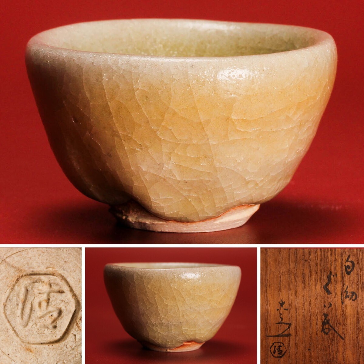- 六代 清水六兵衛 白釉ぐい呑 共箱 共布 本物保証