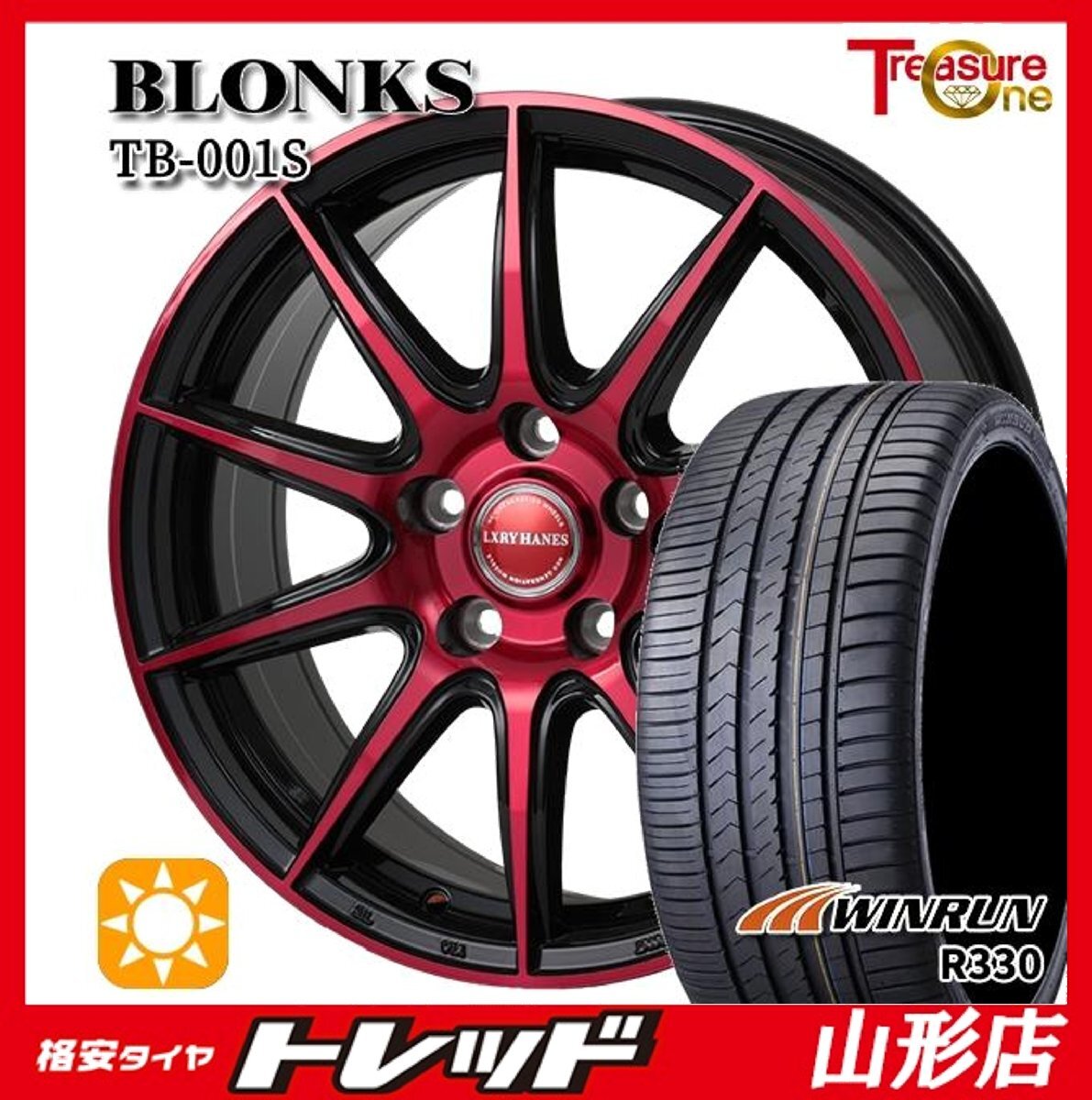 > 山形店 新品 夏タイヤホイール4本セット ブロンクス TB-001S 17インチ 7.0j 5H114.3 +48 BPレッド WINRUN R330 225/55R17 2025年製 マツダ6
