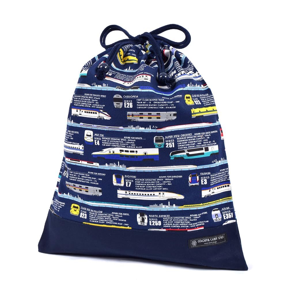 - 体操服袋 男の子 巾着袋 大 体操服入れ 小学生 お着替え袋 大きめ 出発進行スーパーエクスプレス カラフルキャンディスタイル N3378800