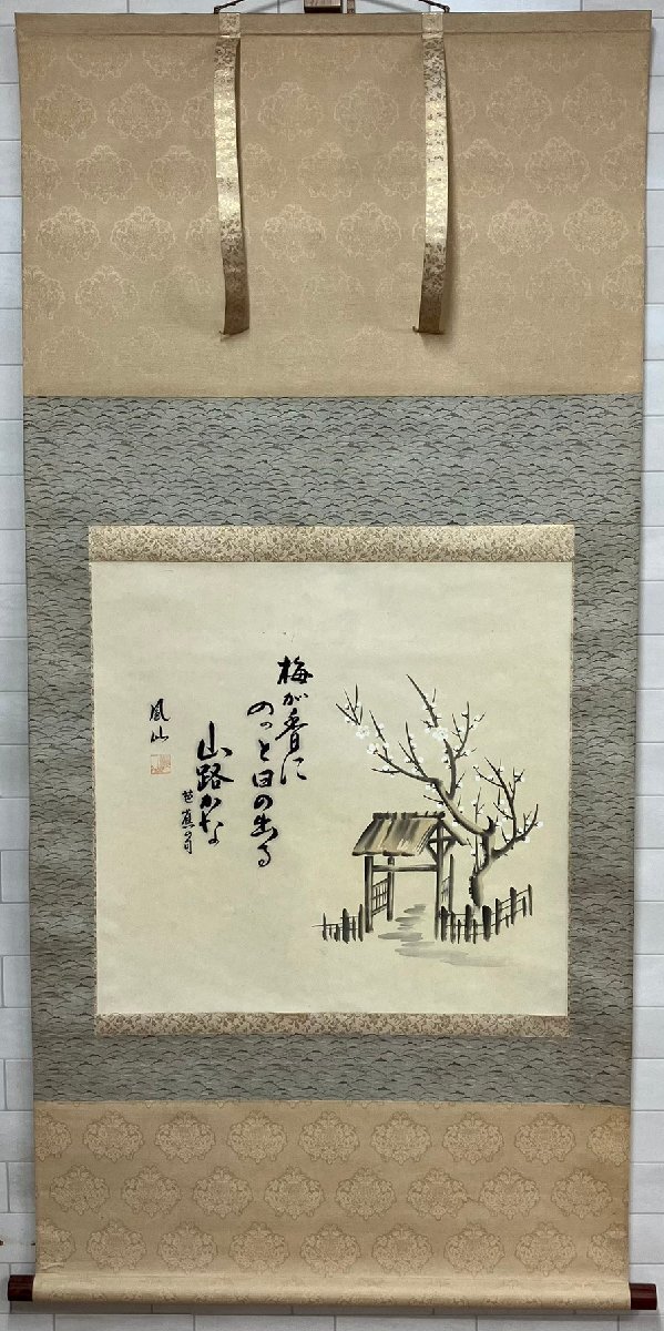 > S304 【模写】掛け軸 1点 背景 書【梅花】 作者:藤田鳳仙 日本古美術 中国古美術 美術品 骨董 箱付き 現状品 (約)縦:136.5×65㎝