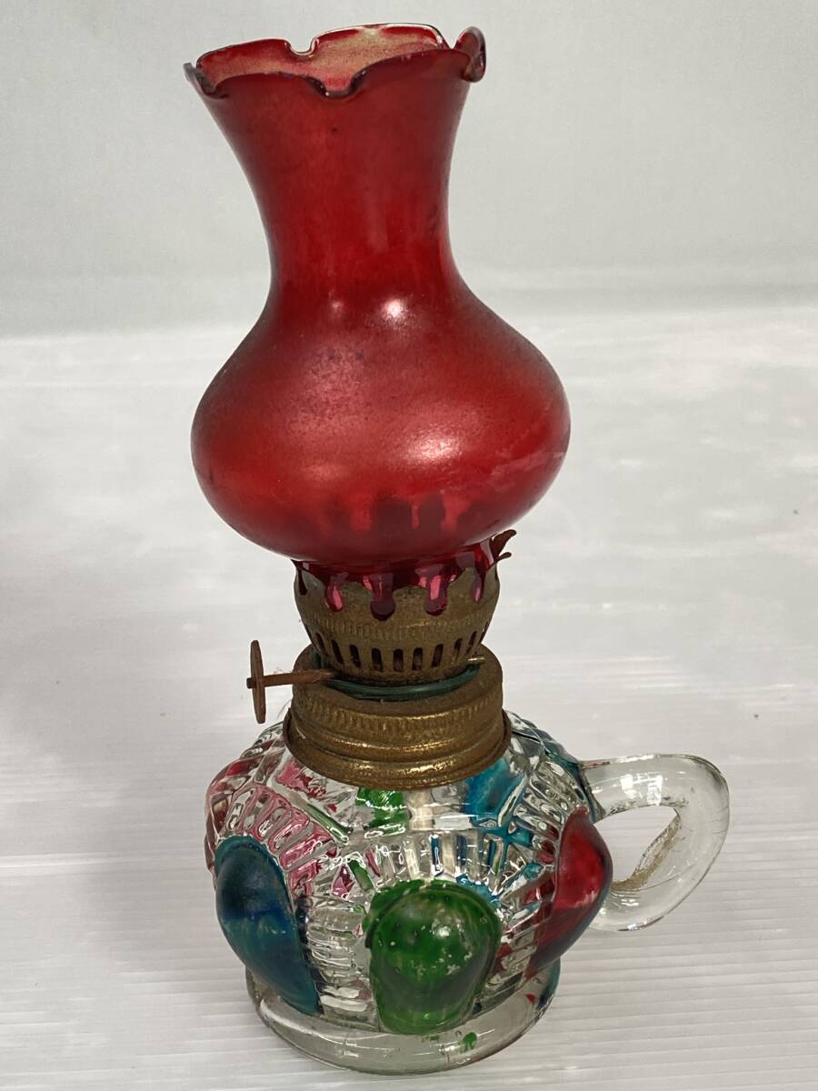 - 2510-306 アンティーク ガラス製オイルランプ 昭和レトロ アロマポット 卓上 照明