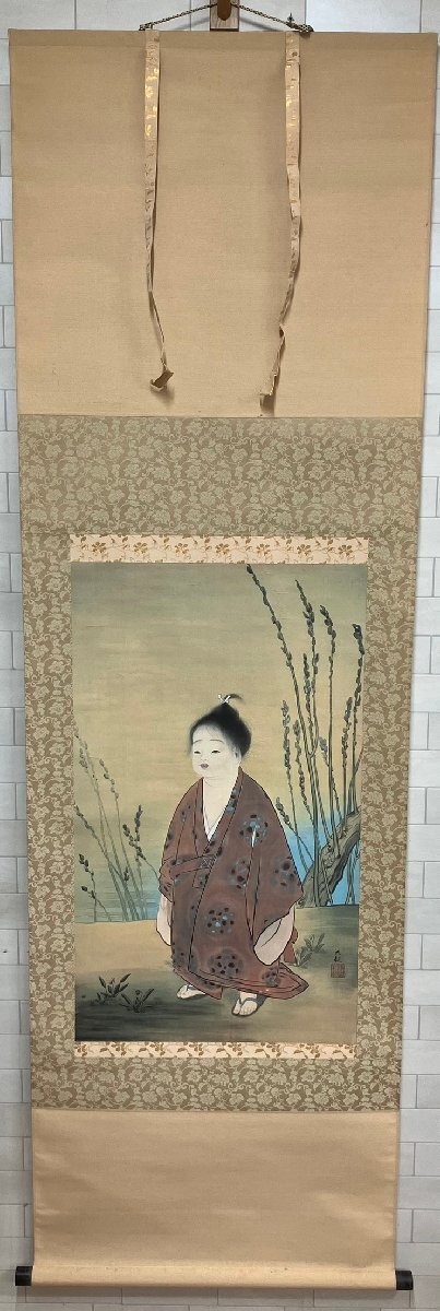 > S306 【模写】掛け軸 1点 人物 【無我図】 作者:大観筆 箱付き 日本古美術 中国古美術 美術品 骨董 現状品 (約)縦185×58㎝