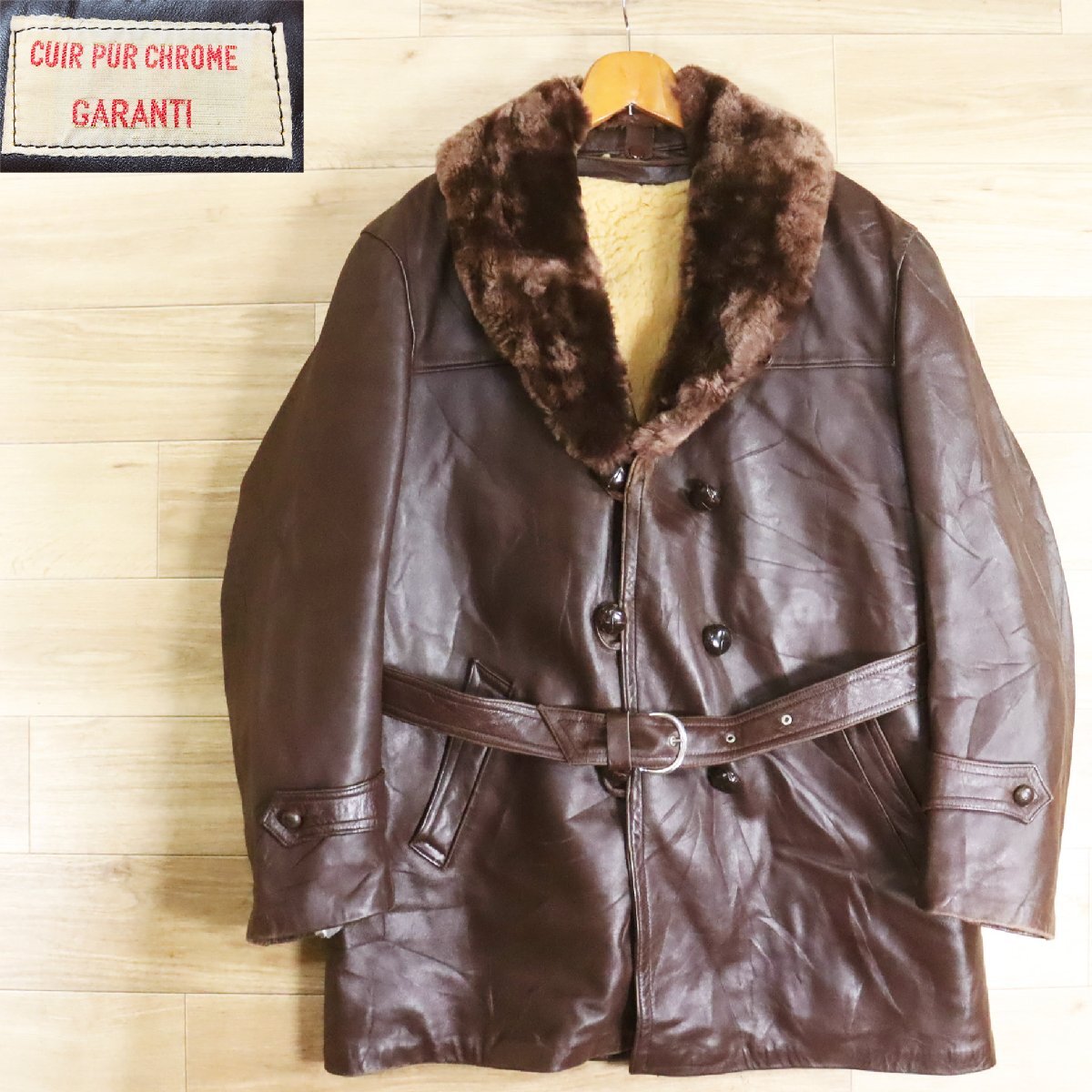 - *11K/Y5.1-6 60s~ ユーロビンテージ ショールカラー レザーカーコート 本革 ムートンライナー レザーコート レザージャケット