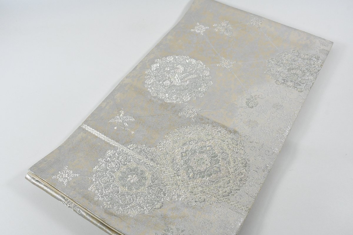 > 袋帯 六通柄 更紗 銀糸 花 帯丈426cm ★着物屋 ne-16504 桜庭呉服店