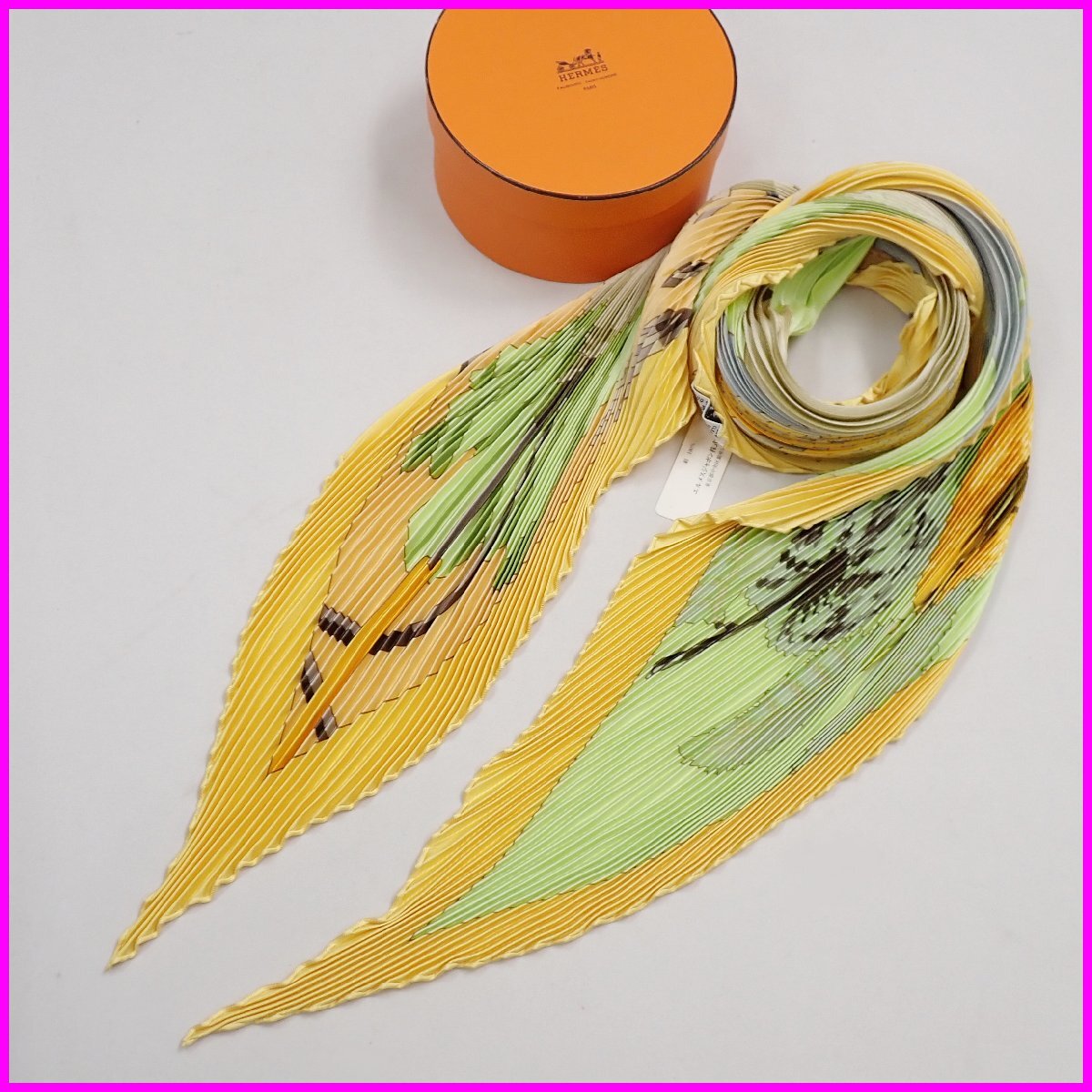 > ☆1円 未使用 HERMES/エルメス シルク100% カレプリセ/プリーツスカーフ ノルマンディー海岸の魅力 II/約132×34cm/箱付き&2181000001