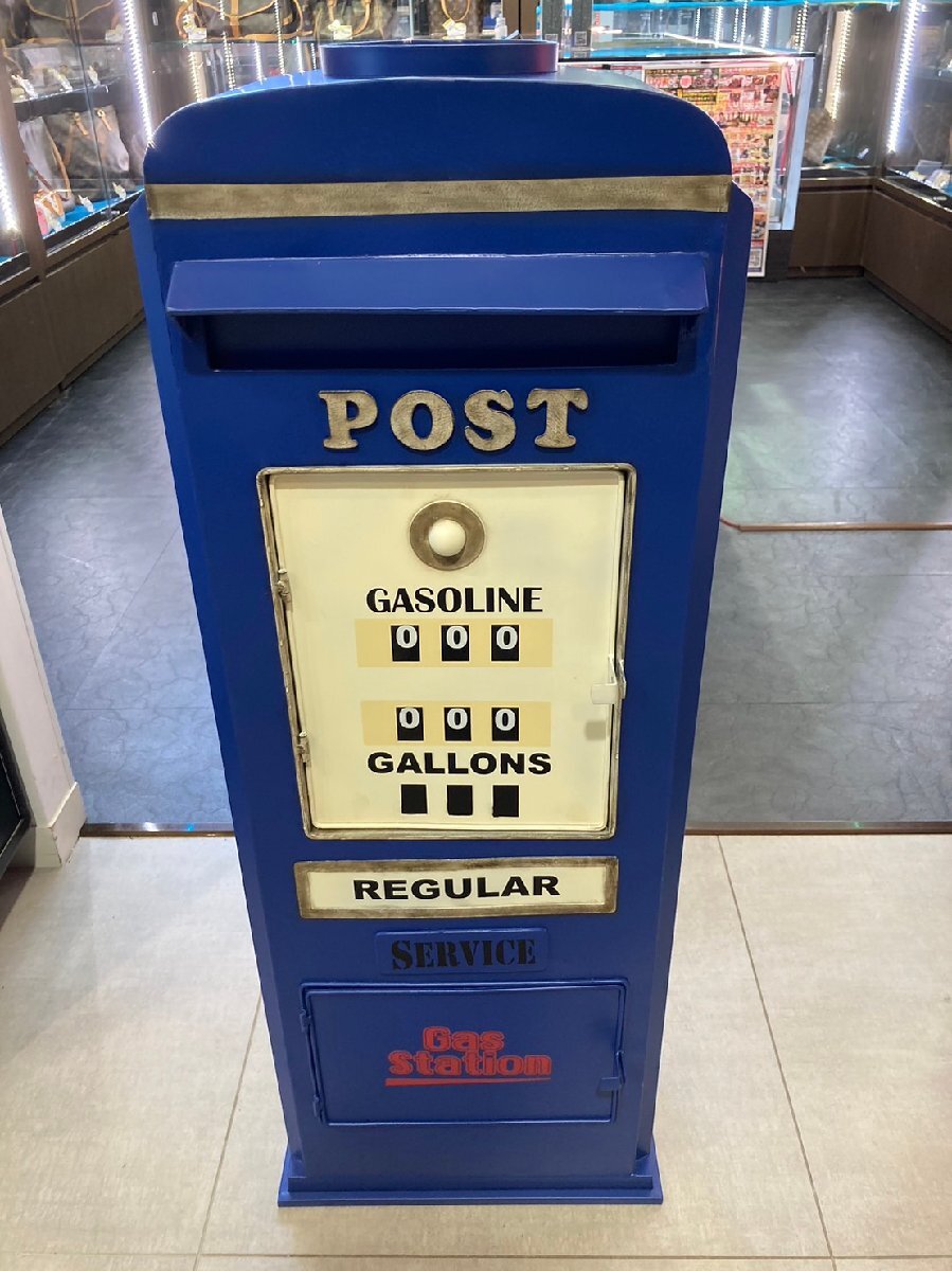 - ◆【引取限定!!長野県諏訪市】保管品 ガスポンプ風ポスト 青系 郵便受け 住宅設備 おしゃれ 中古扱い◆11280