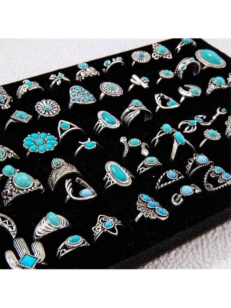 - リング レディース セット ファッション模造ターコイズ 20個セット レディース アンティークシルバーリング ボヘミアン レトロ