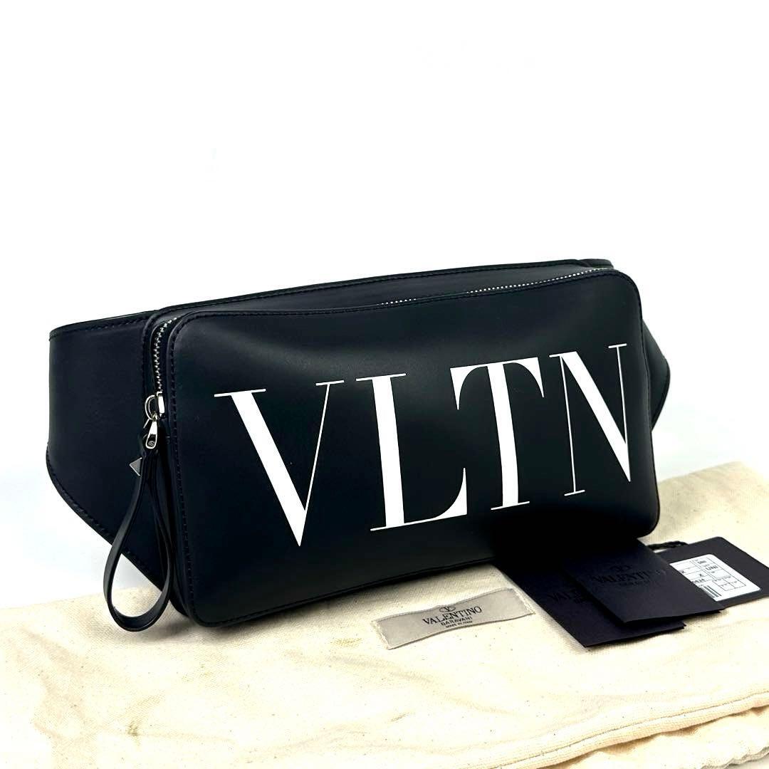 > 【極美品】VALENTINO GARAVANI ヴァレンティノ ウエストバッグ VLTN ロゴ スタッズ ボディバッグ レザー 黒 ブラック フォーマル 男女兼用