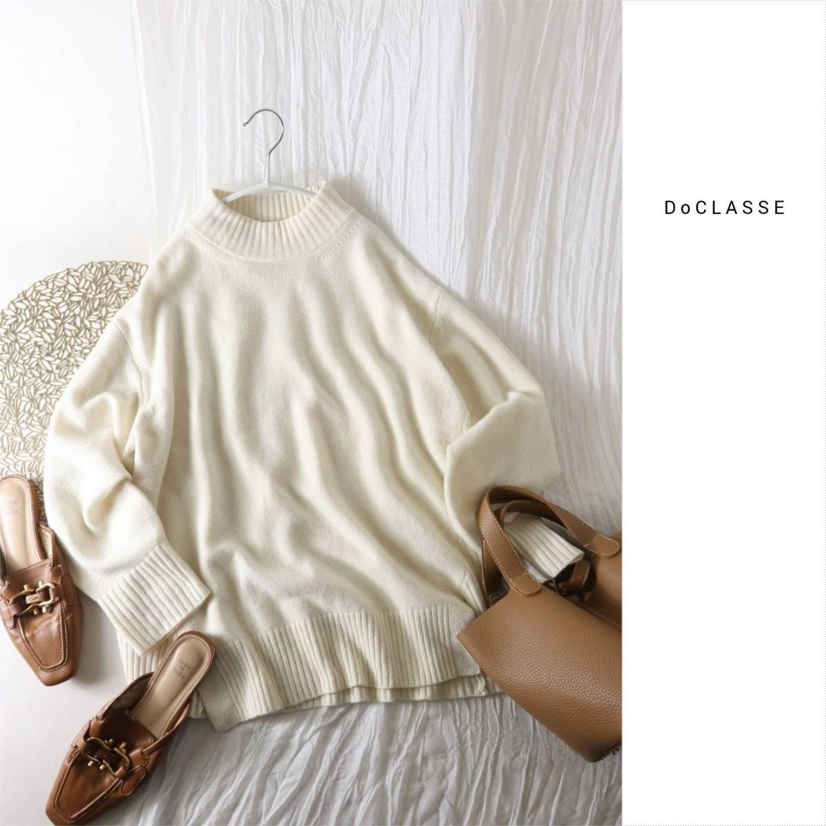 > ドゥクラッセ DoCLASSE☆ウールカシミヤ サイドスリット ハイネック ニット S/Mサイズ☆A-O 5938