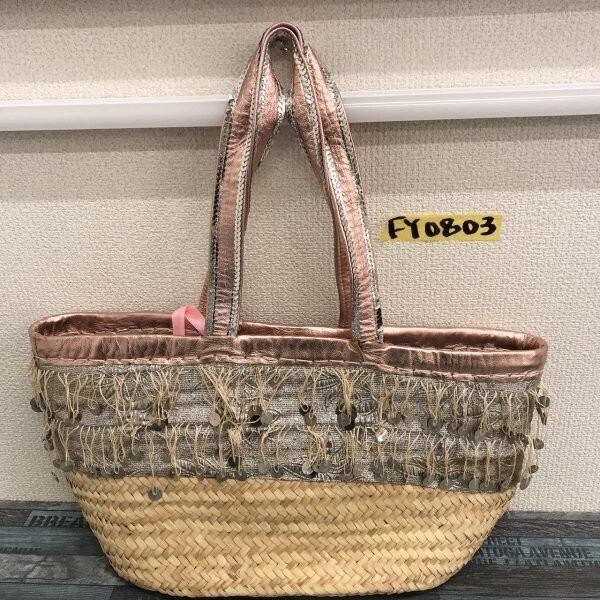 - LONDON 装飾付き かごバッグ ベージュシルバーピンク