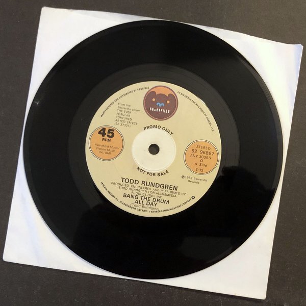 - TODD RUNDGREN Bang the Drum All Day カナダ盤シングルPR Bearsville 1982