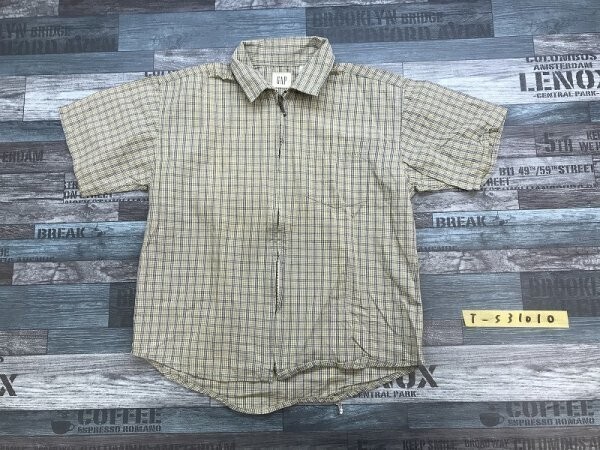 - GAP ギャップ レディース チェック柄 薄手 ジップ 半袖シャツ S 黄緑カーキなど
