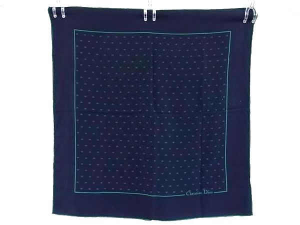 - ChristianDior クリスチャンディオール シルク100% スカーフ ストール ショール ネイビー系×グリーン系 DG4908