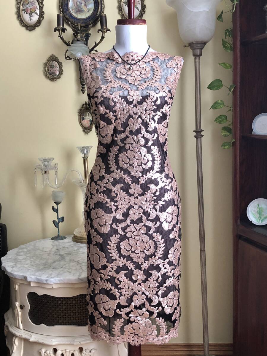 - 【TADASHI SHOJI/タダシショージ】ピンクベージュスパン花柄刺繍/黒ネットレース/カクテルドレス (US・4/9号M)#7