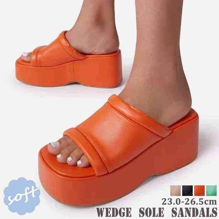> レディース ミュール ウェッジサンダル 夏 スリッパ オープントゥ 厚底 美脚 脚長 オレンジ 23.5cm(37) アプリコット
