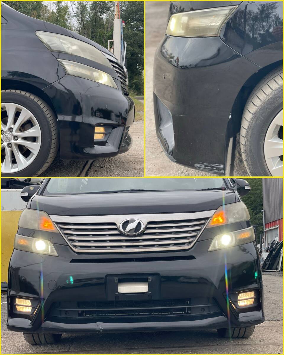 > VEL-9] 純正トヨタ ヴェルファイア ANH20 H21年 フロントバンパー+グリル 色:202ブラック フォグランプ付き + コーナー センサー 2個付き