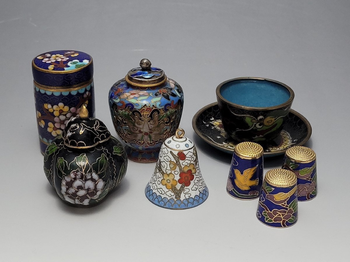 - 七宝焼 蓋壷 等 セット 時代唐物 幅約6.8cm / 明清時代 盃 小碗 杯 盞 小鉢 茶道具 煎茶道具 酒器 唐物 人間国宝 李朝 高麗 古玩 古董