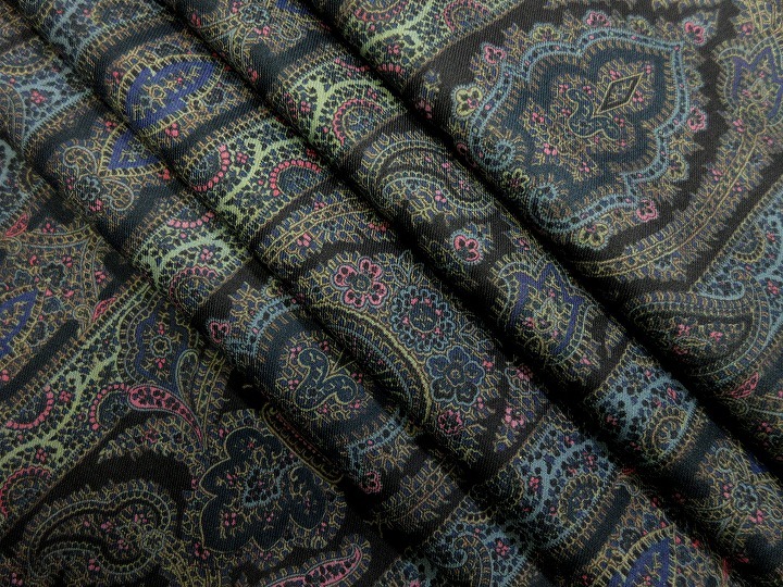 > 綿100 プリント バロック柄 シャツ ワンピース スカート 薄地 巾108cm 長4m 茶系 [a070]