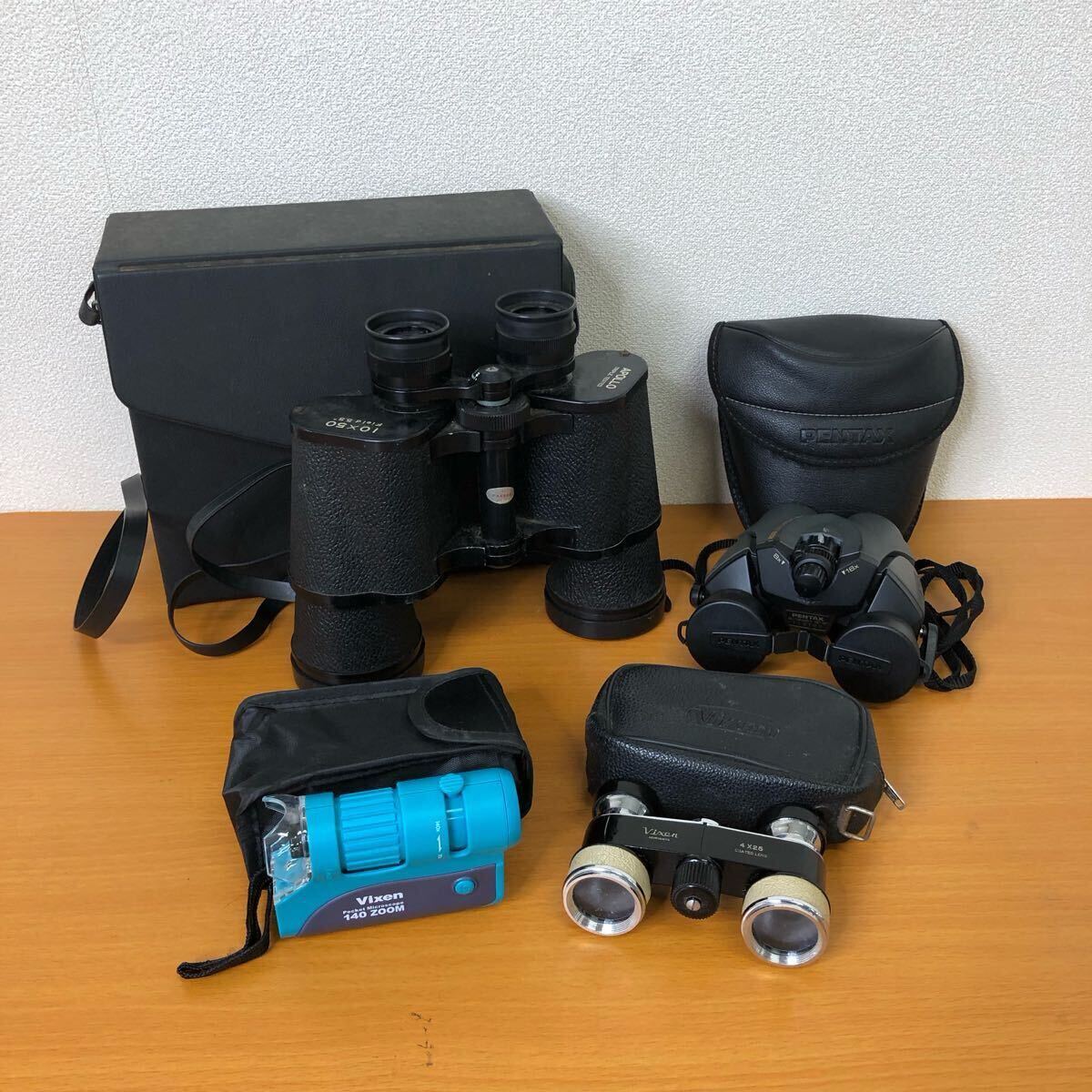 > □【売り切り】双眼鏡 顕微鏡 オペラグラス 4台まとめ APOLLO 10x50/PENTAX 8-16x21 UCF ZOOM/Vixen 140ズーム/Vixen 4x25