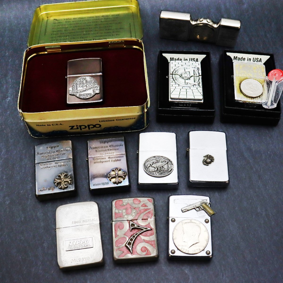 - ジッポ(Zippo)ライター 10点,時計1点 おまとめ ※メタル貼り一部欠落有り※火花未確認◆おたからや【x-LI00739】