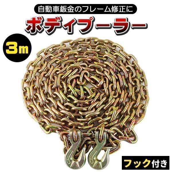 - チェーン フック付 3m 鈑金 フレーム修正 ボディープーラー フック 自動車 事故 修理 工具 ツール