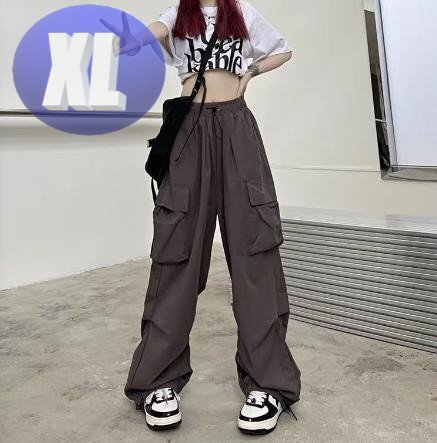 - カーゴパンツ グレー レディース XL ワイド ストリート ダンス アウトドア ウエストゴム