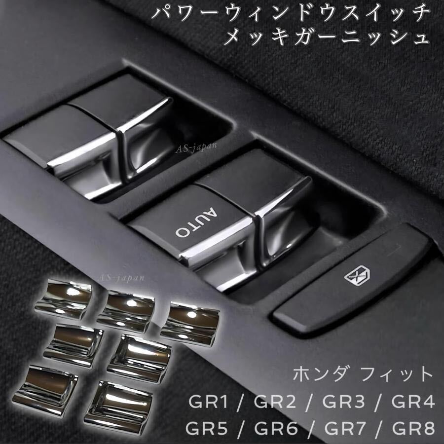 - ホンダ フィット GR系 パワーウィンドウ スイッチ メッキ トリム 装飾カバー 内装 カスタム パーツ FIT GR1 GR2 GR3 GR4 GR5 GR6 GR7 GR8