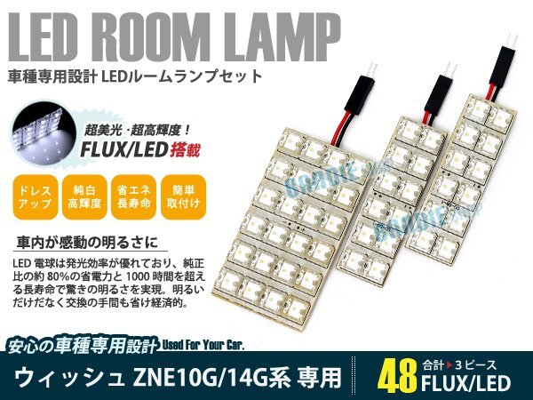 > ZNE10G/ZNE14G系 ウィッシュ 3ピース 合計48ブロック発光 ルームランプ LED化 白発光 高輝度FLUXタイプ 一台分セット室内