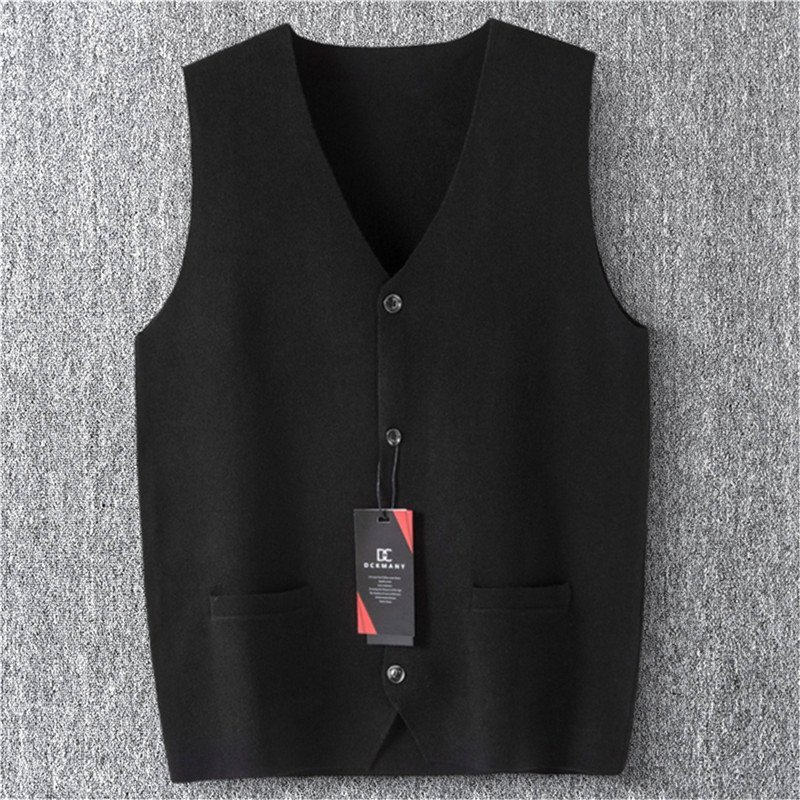 - 新品 DCKMANY 上品 ウール混 前開きベスト 袖なし ベスト メンズ Vネック ベストカーディガン ニットベスト 無地 秋冬 暖かい 黒 T5154-XL