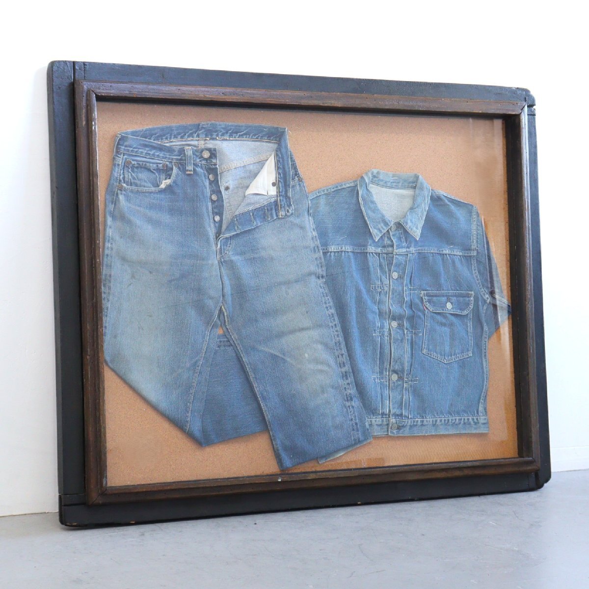- ヴィンテージ 木製フレーム 額縁/額装 アンティーク ガラス ショーケース アメリカ 木製 ディスプレイ インテリア 古着 #702-85-50-470