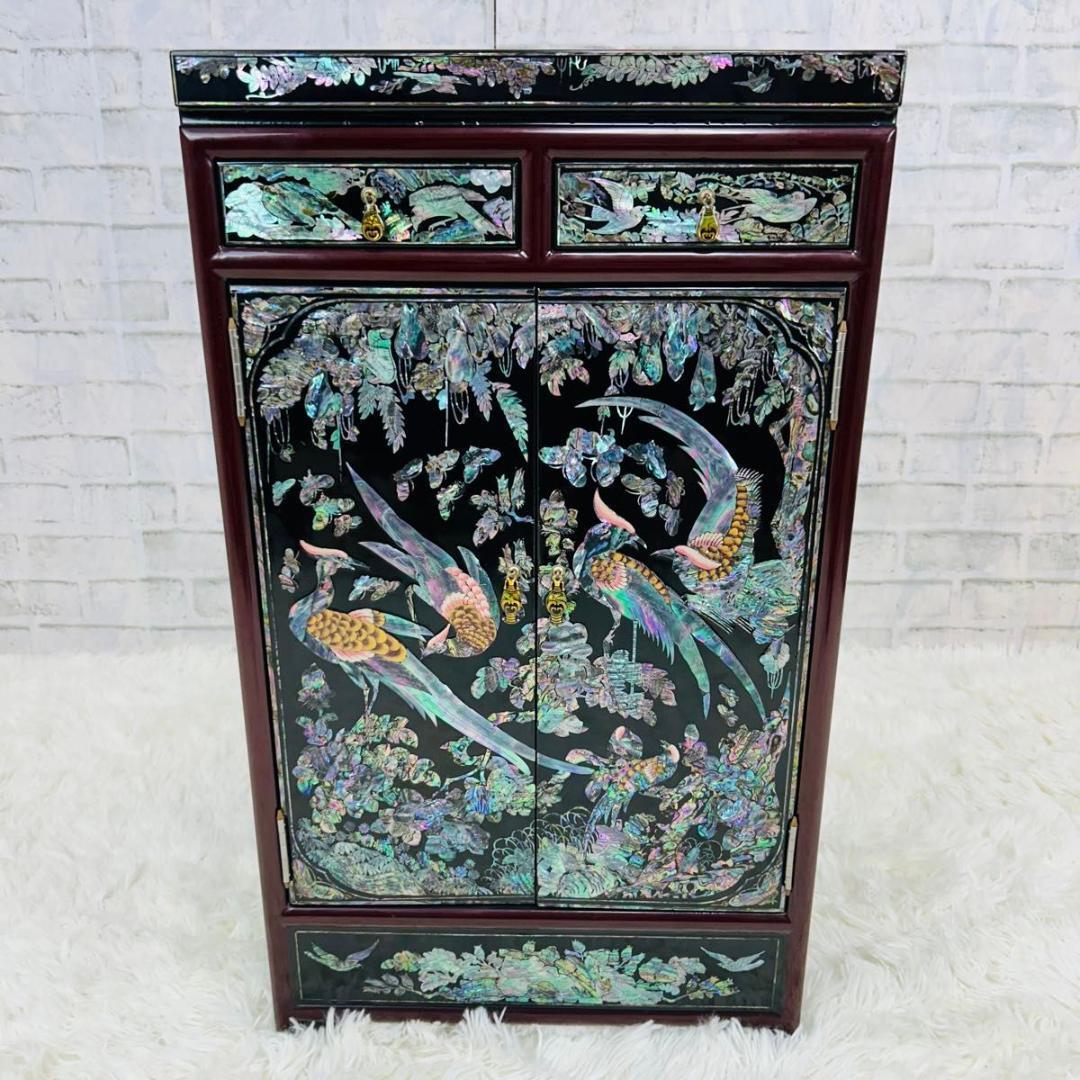 - 螺鈿細工 小箪笥 アンティーク 黒塗り 螺鈿 希少 収納 家具 縦置き