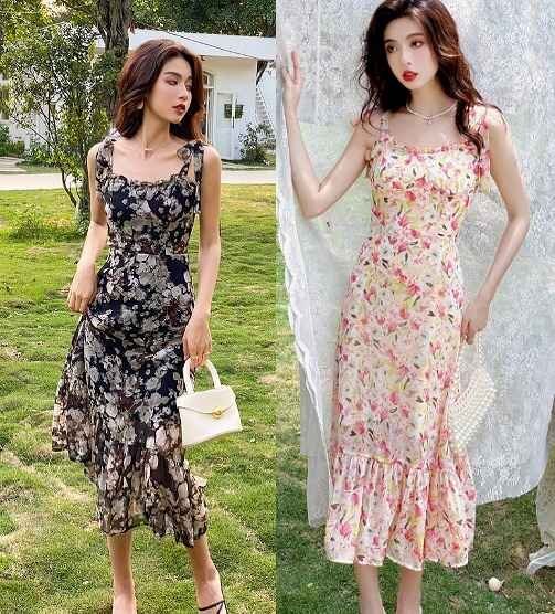- 全2色 キャミソールワンピース プリント フリル ロング丈 sweet系 S ブラック