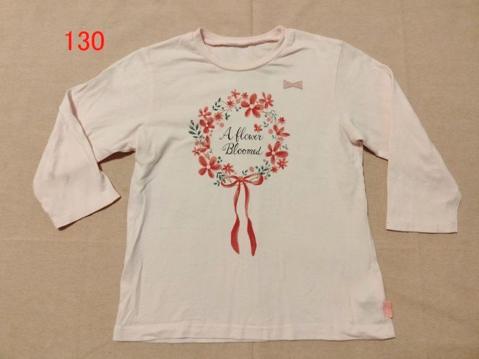 > 130 ベルメゾン GITA リボン お花 七分袖 ピンク Tシャツ トップス カットソー 女の子 女児