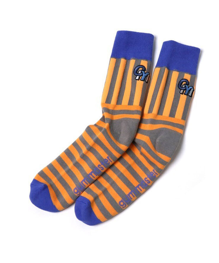 > <25-27cm><グレー×オレンジ(03)>gym master ジムマスター GYM刺繍ストライプボーダーソックス G666752 靴下