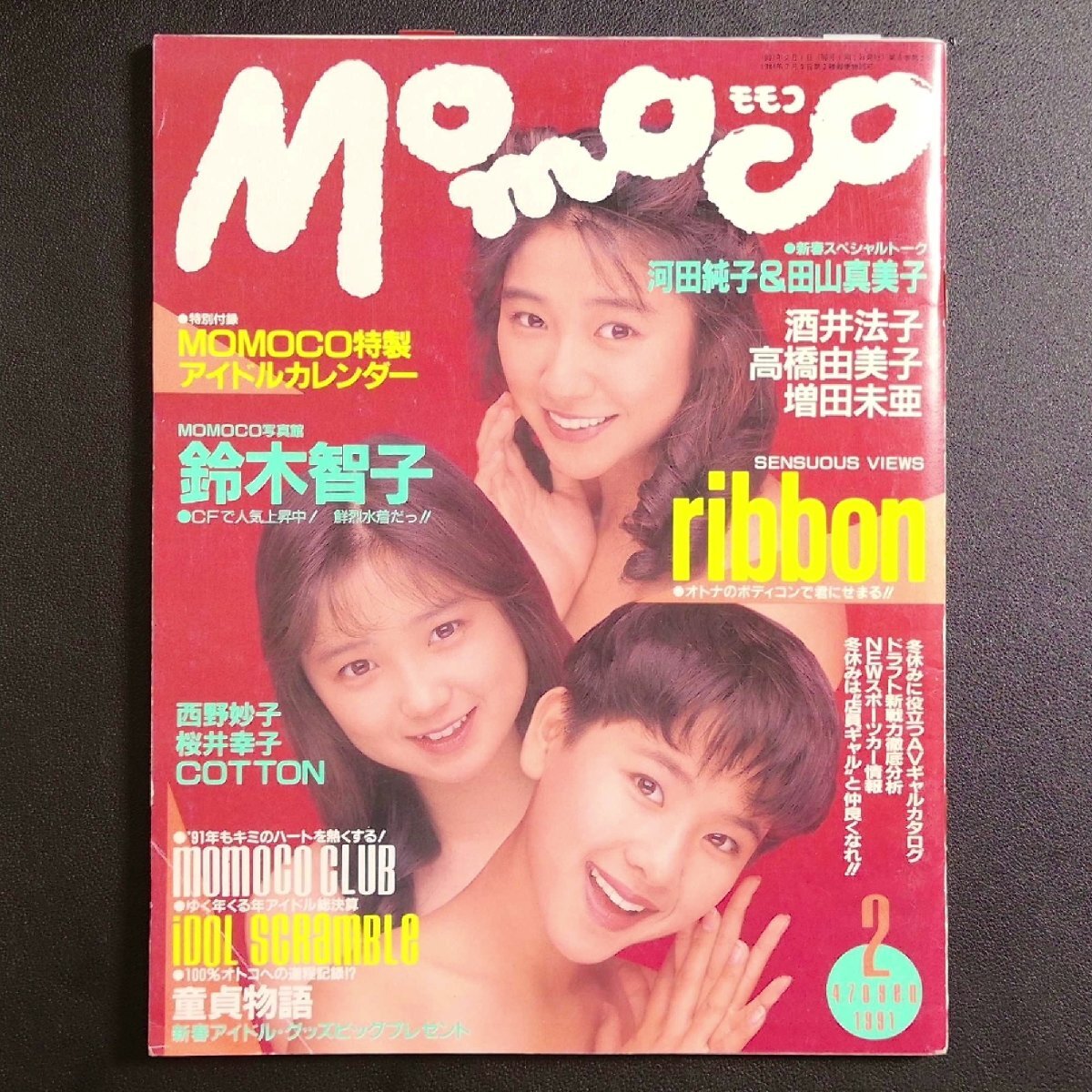 > Momoco モモコ 学習研究社 1991年 平成3年2月号 ribbon 鈴木智子 河田純子 田山真美子 酒井法子 高橋由美子 増田未亜 西野妙子 桜井幸子 CO
