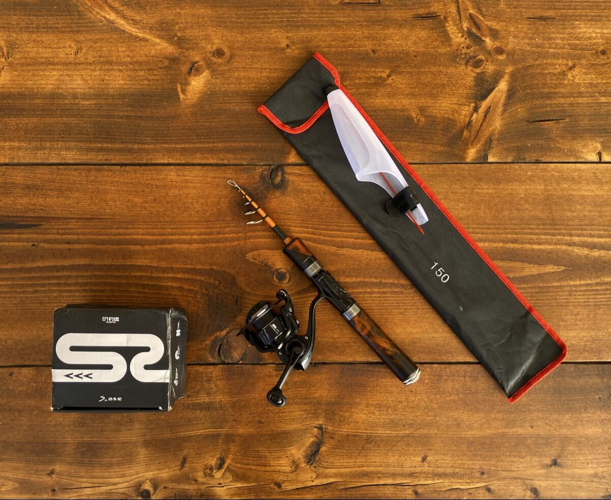- 新品未使用 釣り竿セット 超軽量 カーボンロッド トラウトロッド 5ft 150cm ウッドグリップ 渓流釣り トラウトセット
