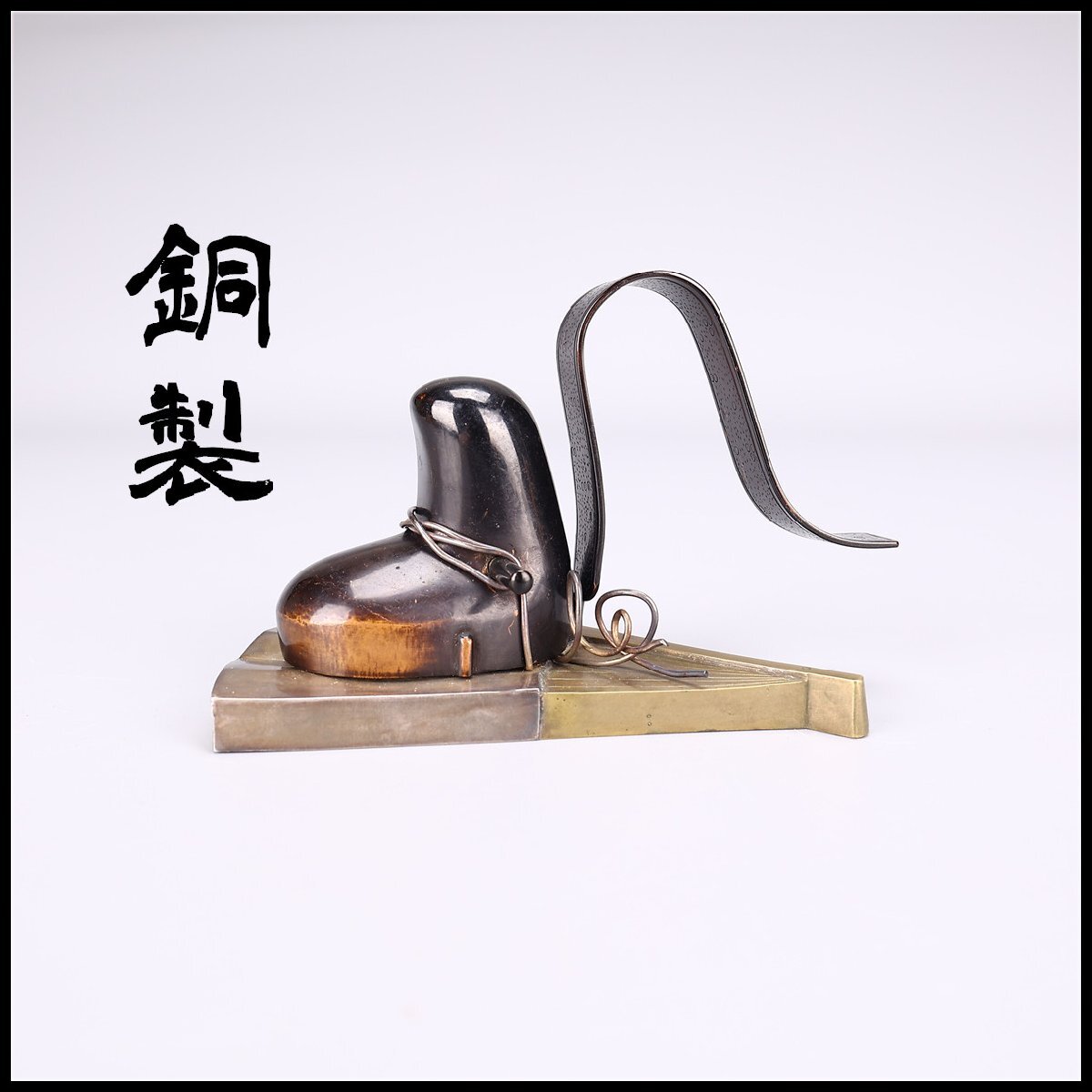【吉】DA870 江戸時代 【銅製】 銀線巻 銀製 冠 置物/共箱付 美品!拍卖
