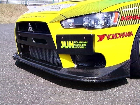 > 「ジュン/JUN AUTO」ランサー エボリューションⅩ(CZ4A)用フロントリップスポイラー(綾織りカーボン/クリア塗装済み)