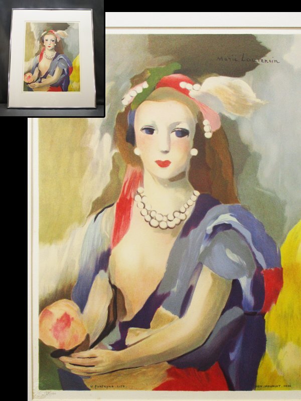 > 5546 マリー・ローランサン リトグラフ 『婦人 FEMME』 額装品 額サイズ約79×66cm/エディション有 限定39/100 Marie Laurencin 版画