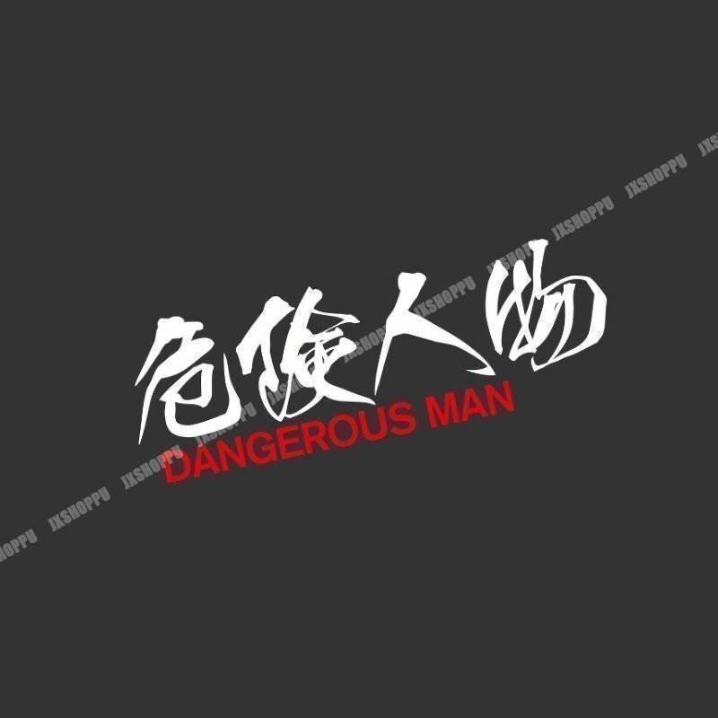- 送料0円 危険人物ステッカー [白文字] ドレスアップ 威嚇 警告 DANGEROUS MAN シール ユニーク かわいい デザイン 事故防止 車 バイク