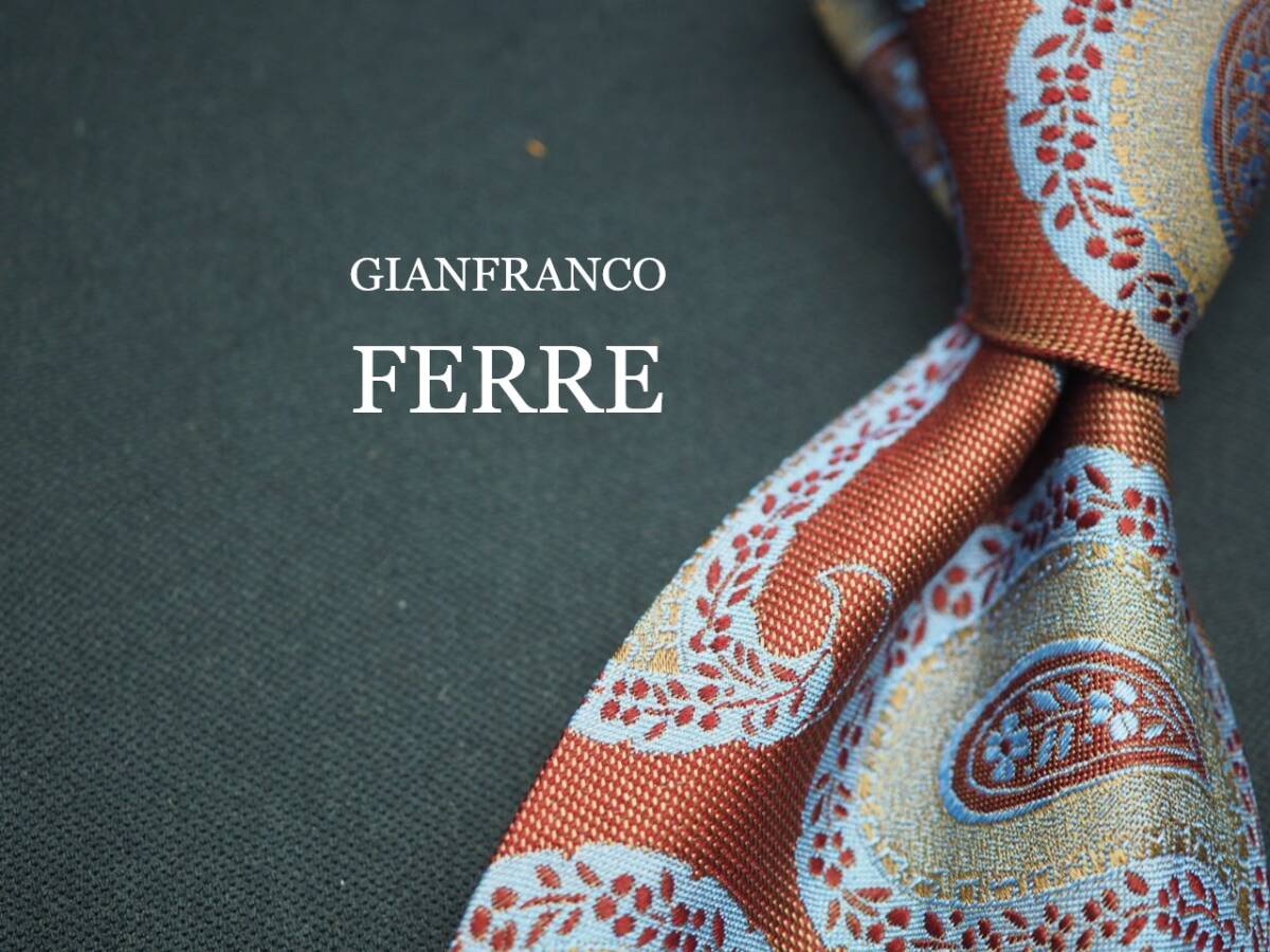 - 【GIANFRANCO FERRE ジャンフランコフェレ】 G1224 ブラウン系 ペイズリー SILK ブランド ネクタイ 古着 良品 転売 仕入