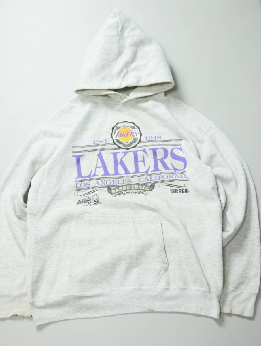 - C196/TRENCH/90s/アメリカ製/Los Angels Lakers/レイカーズ/スウェットパーカー/プルオーバーパーカー/丸胴/Lサイズ/ヴィンテージ