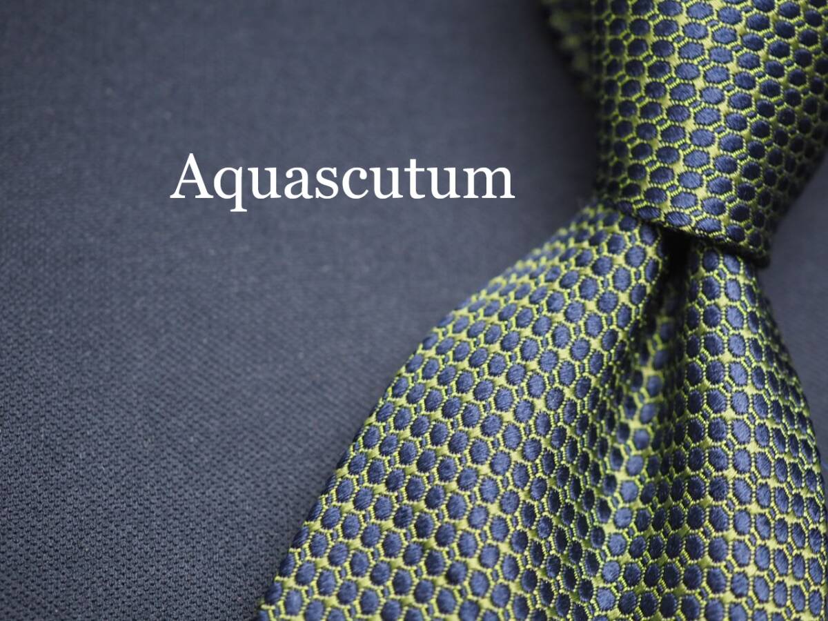 > 美品【Aquascutum アクアスキュータム】 G1198 ネイビーオリーブ系 SILK ブランド ネクタイ 古着 良品 転売 仕入
