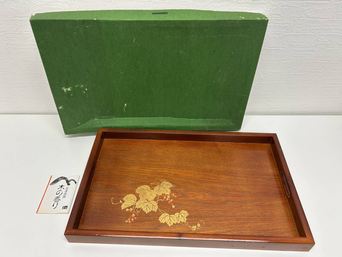 - E-1183 【同梱不可】980円~ 未使用品 会津漆器 木の香り お盆 盆 トレー