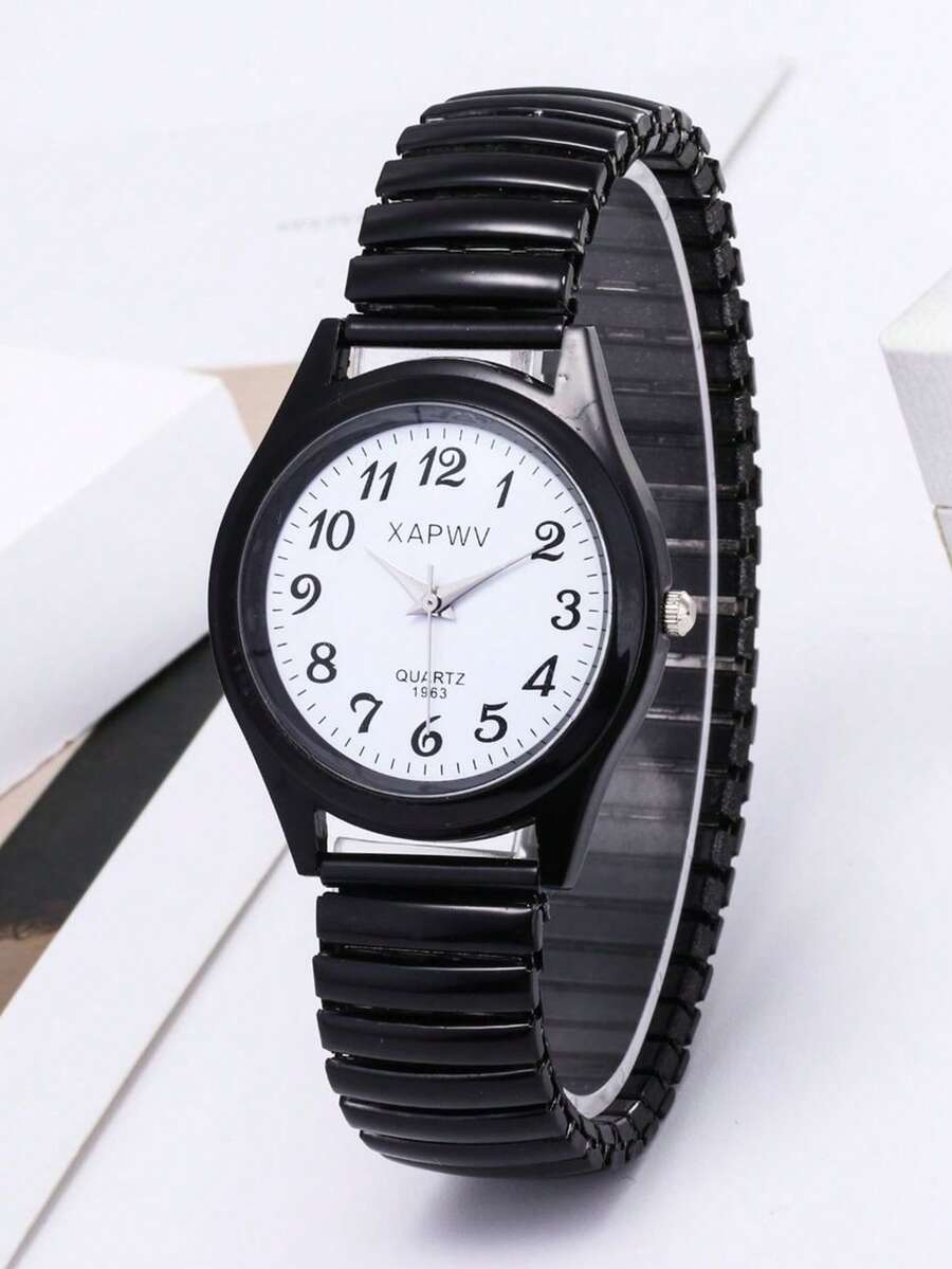 - 腕時計 レディース クォーツ 中高年男女向け ビンテージクォーツ腕時計、大型ダイヤル、アラビア数字、ポインター表示、伸縮バンド