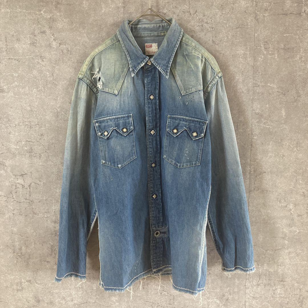 - Levi's ショートホーン デニムシャツ ダメージ加工 長袖 Lサイズ