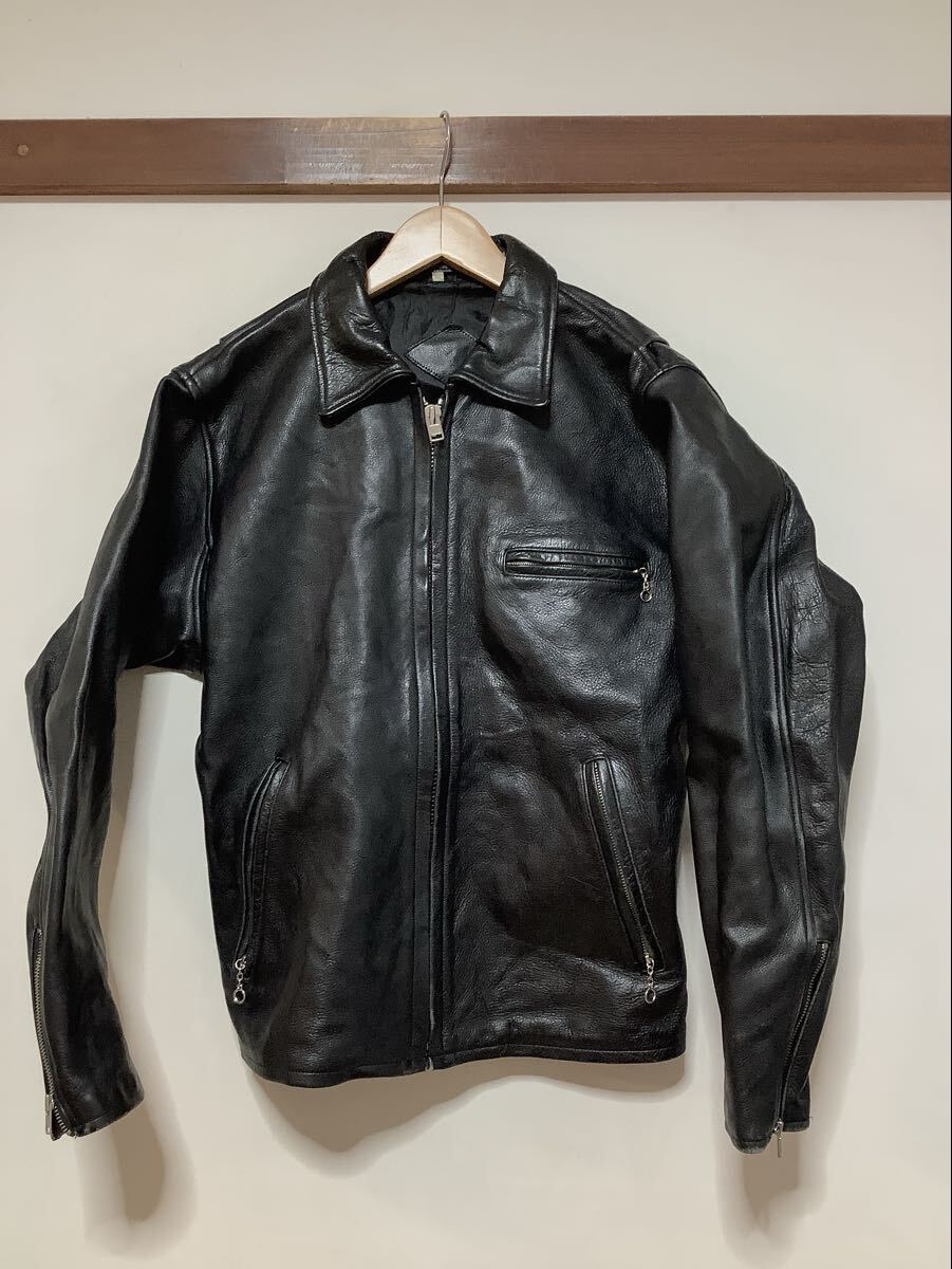 - と1751 ノーブランド レザーライダースジャケット シングルライダースジャケット L ブラック