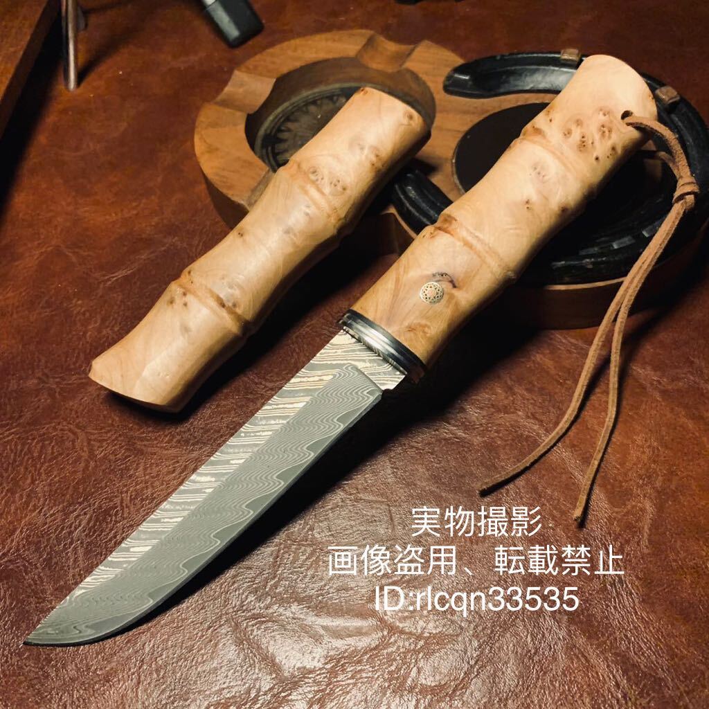 - 超高品質 高級木製 和風木鞘ナイフ ダマスカス鋼刃 和式小刀 伝統工芸 日本刀型 キャンプ アウトドア 釣り 野外登山 22.5cm