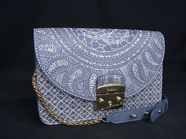 - 1円 ■美品■ FURLA フルラ メトロポリス レザー ショルダーバッグ 肩掛けかばん レディース ブルーグレー系 FU5130